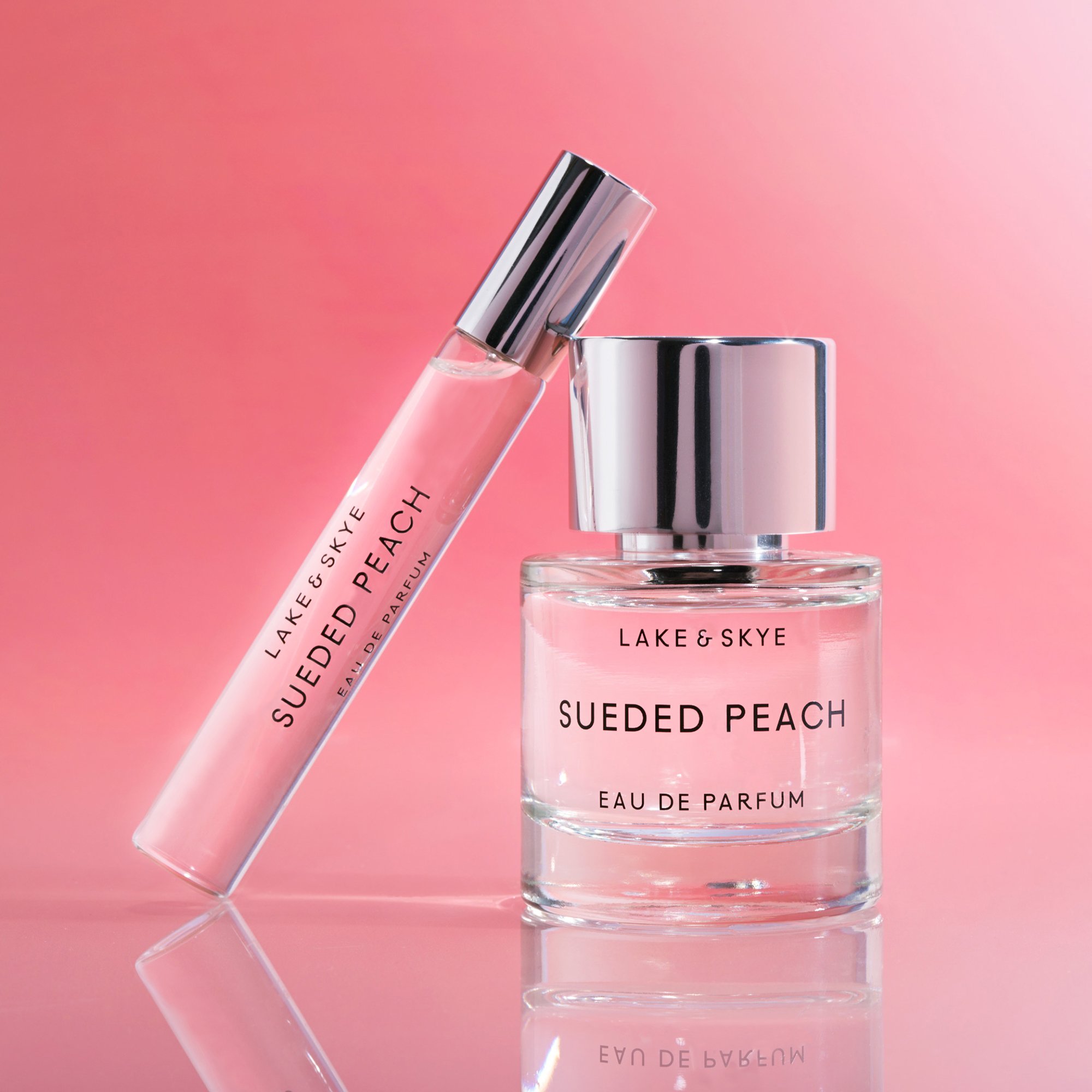 NEW! Our Sueded Peach Eau de Parfum is a delicate, velvety blend of sun-ripened stone fruit and warm cardamom with a floral heart of ylang ylang and sweet saffron.